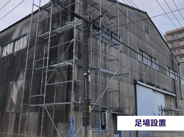 | 全面足場との違い | 建物全体を囲うのではなく、補修が必要な屋根の一角とその昇降路に絞って設置。 |