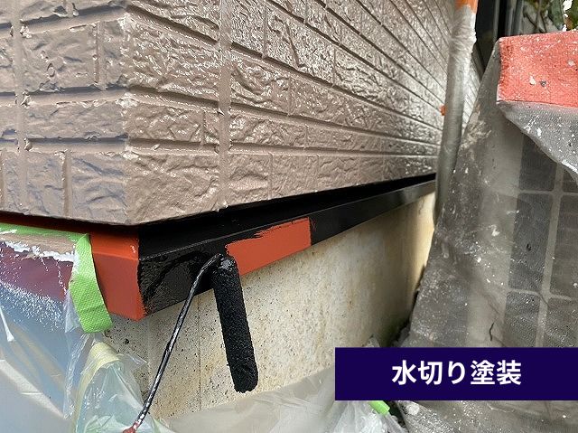 ▲基礎と外壁の間「水切り板金」塗装時の様子